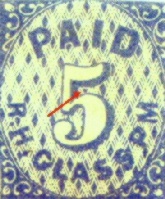 The 5c Red Memphis Provisional also has a very deceptive fake. But again it has a uniform characteristic which can easily immediately distinguish the fake from the original even though the genuine stamp does exist in a variety of red color shades. Just below the numeral "5" are two dark prominent diamonds as part of the background. In the genuine stamp, these diamonds are complete. In the fakes, the "5" cuts off 1/3 to 1/2 of the diamonds. You may need a magnifier to see this characteristic, so be very careful when buying a 5c Red Memphis Provisional.