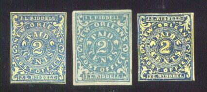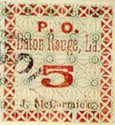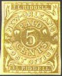 New Orleans, La was the Confederacy's largest city and the center of commerce. As such, New Orleans had an immediate need for postage stamps to carry on business. The New Orleans Confederate postmaster, John L. Riddell, immediately issued New Orleans Provisional stamps beginning in June 1861 in 2c and 5c denominations. These New Orleans Provisionals were woodcuts and went through a number of printings as they were in use from June 1861 until early 1862 (rare to see a usage past February 1862). The New Orleans 5c Provisionals are the most common of the CSA provisional stamps and the ones most likely to be acquired by the average collector. But there are a great many very dangerous reproductions of these stamps.