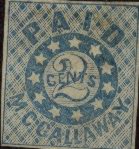 The 2c Blue Memphis Provisional Fake is very easy to detect. The key is the loop of the "D" in "PAID." The genuine stamp has a dark prominent diamond contained within the loop. The fake does not have the dark diamond. This is universal. Look at the loop of the "D" and you will not make a mistake.