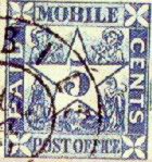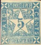 Mobile, Ala, a major seaport on the Gulf of Mexico, issued 2c and 5c Provisionals. The Mobile Provisionals are somewhat more scarce than the New Orleans and Memphis Provisionals above, but they can still be acquired by the average collector. The Mobile Provisional fakes, fortunately, are quite easy to detect from the genuine issues. Below are illustrated the 2c and 5c Fake Mobile Provisionals as well as the Genuine Stamps. The 2c and 5c have exactly the same design except for the central numeral and the color. The appearance of the fakes of the two denominations are also very similar. When the fake and the genuine are seen side by side, the differences become obvious.