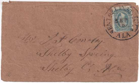 Turned Cover -- First Use (inside) with manuscript postal marking "Shelby Sprgs Ala 24 AUG" but