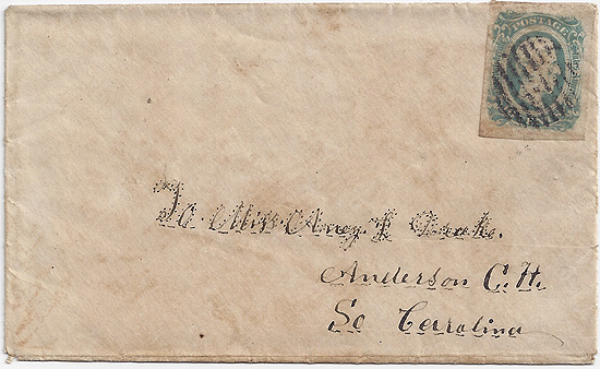 | AF228 | CSA #12 (AD) (4-Margin) with an Army of Northern Virginia Field Grid Cancel (ANV-08). Addressed to Miss Amy L. Drake, Anderson C.H., So. Carolina. Most likely from a South Carolina soldier writing home to his girl friend. Very clean cover. | $100.00 |