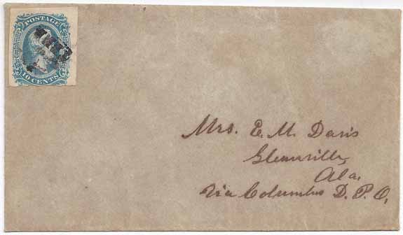 cancel CC ATN-02a. Addressed to Mrs. E. M. Davis, Glennville, Ala via