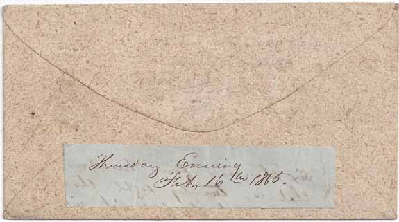 dateline "Thursday Evening" Feb 16th 1865."