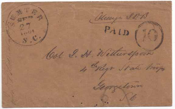 Address to Col J. H. Witherspoon, 4th Regt State Troops, Georgetown SC.