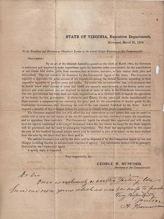is a printed government circular from the STATE OF VIRGINIA Executive