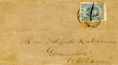Adelaide Hutchinson, Greensboro, Alabama. Apparently the postmaster at
