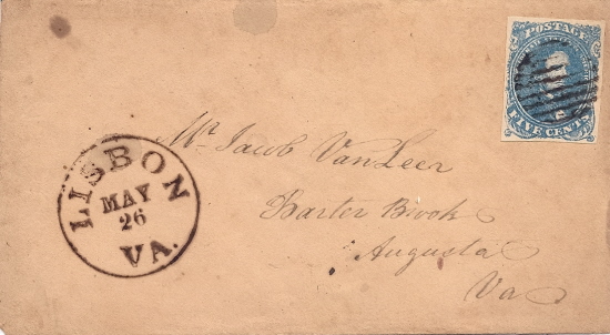 ink. Addressed to Mr. Jacob VanLeer, Barter Brook, Augusta, Va. Minor
