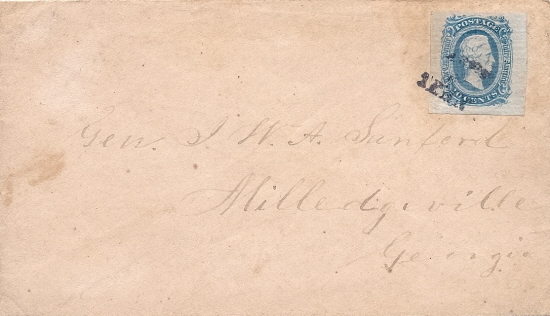 army field cancel (not dated). Addressed to Gen J. W. A. Sanford,