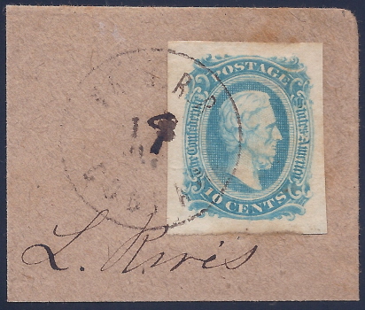 (Virginia Central Railroad) CDS (date not fully apparent). Very Fine