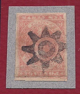 Fancy Cancel (AC-15A). Currently the only recorded 10c Rose Lithograph