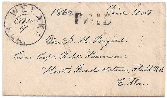 address to Mr. D. H. Bryant Care Capt Robt Harrison, Hart's Station,