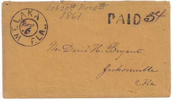 Type A 6 NOV (1861). The cover is from the Bryant-Stephens