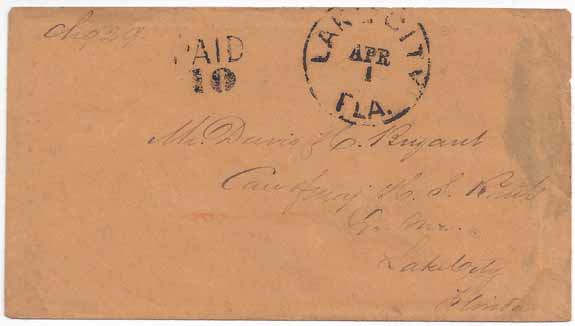 likely 1864) and handstamp PAID 10