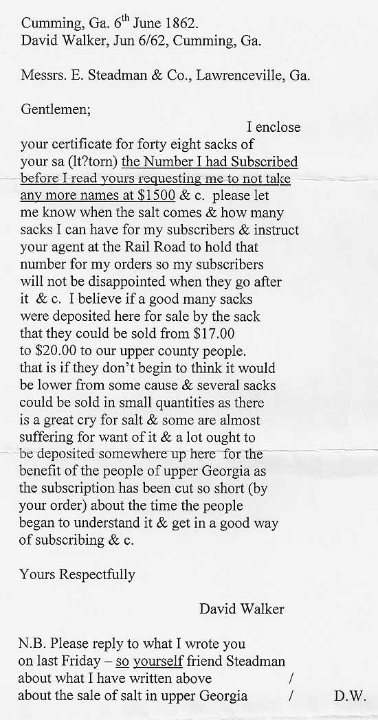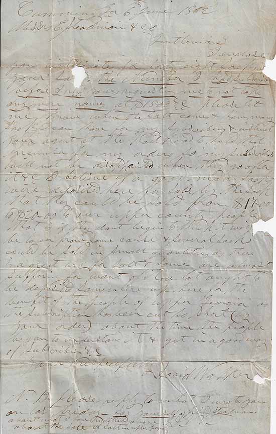 Cumming, Ga William D. Bentley. Addressed to Messer E. Steadman &