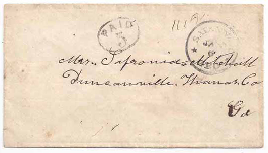 Type F. Addressed to Mrs. Sophronia Mitchell, Duncanville, Thomas Co.,