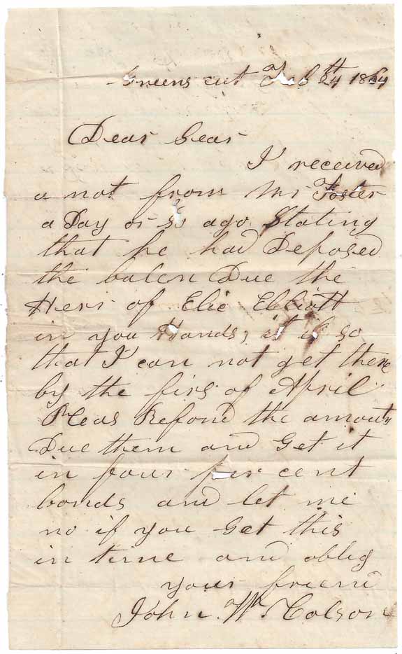 1864" signed by a John W. Colson deals with the dispersal of money from