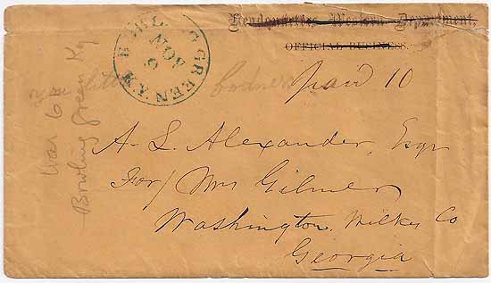 Bowling Green KY CDS 9 NOV (1861) and manuscript "Paid 10." Semi-Official Imprint