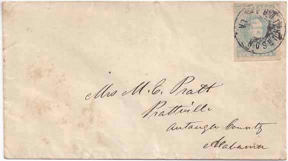 The cover was sent by 1st Lieut Merrill Edward Pratt (1828-1889) of Co K 1st Ala Inf home