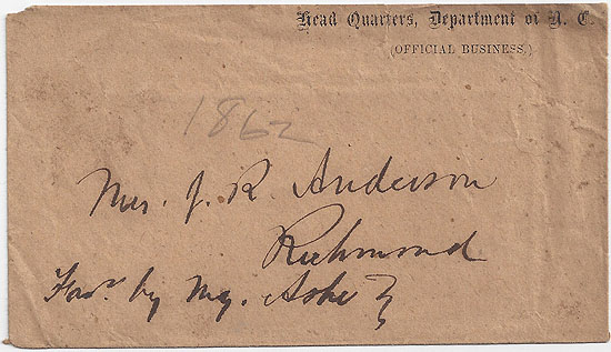 addressee was the wife of CSA Brig-Gen Joseph Reid Anderson. Gen