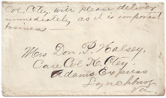 no postal markings addressed to Mrs. Don P. Halsey Care Col K. Otey,