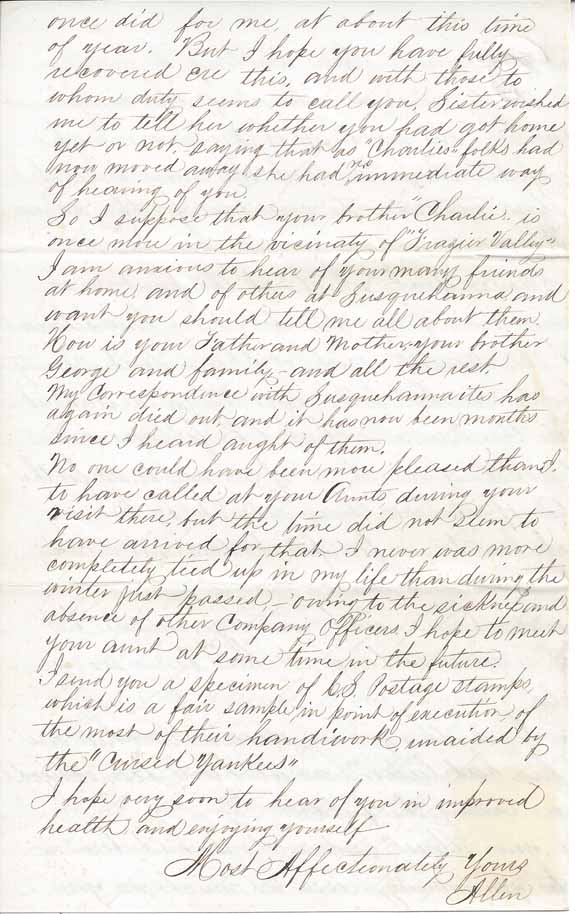 handiwork unaided by the cursed Yankees." He does not say how he acquired the stamp. The first part of the letter