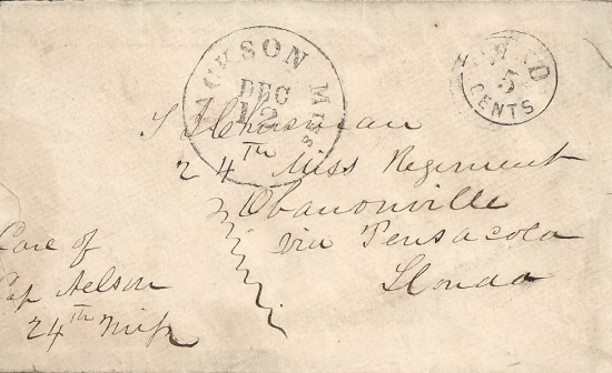of Cap Nelson 24th Miss Regiment Obanonville via Pensacola, Florida.
