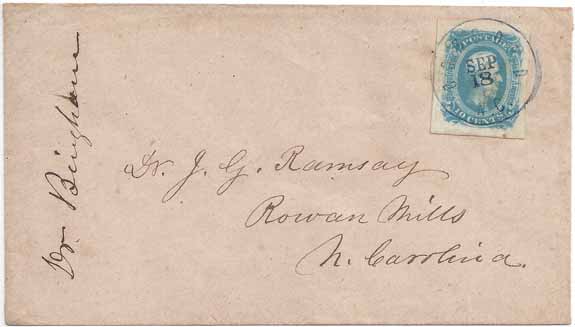 18 SEP. Addressed to Dr. J. G. Ramsey, Rowan Mills, N. Carolina. Period