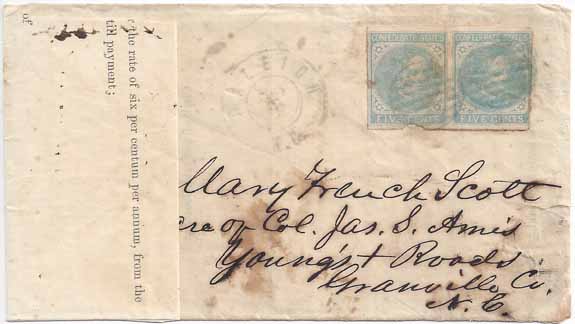French Scott Care of Col Jas S. Amis, Young's X Roads, Granville Co.,