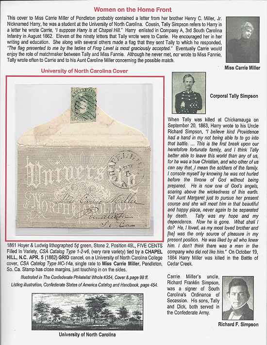addressed to Miss Carrie Miller, Pendleton SC. This cover has been