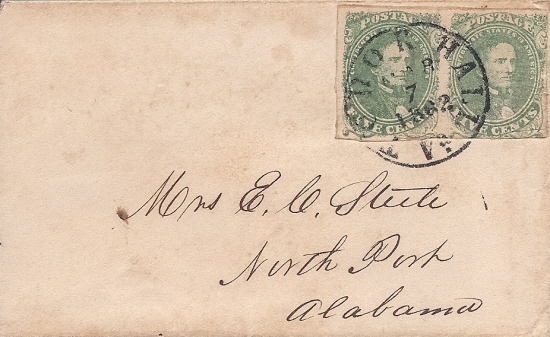 CDS 7 MAR 1862. Addressed to Mrs. E. C. Steele, North Port, Alabama.