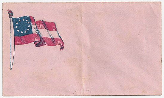 | PAT369 | Stars and Bars Patriotic Cover (11-Stars) Unused. Believed to be of Southern origin but this design is not known with Confederate postal use. Very Fine. | $75.00 |