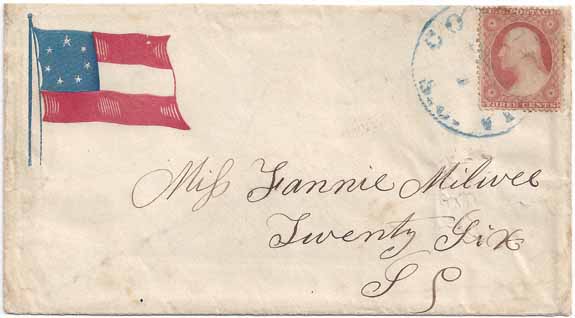 Miss Fannie Milwee, Twenty Six SC. Sealed back flap opening tears. A