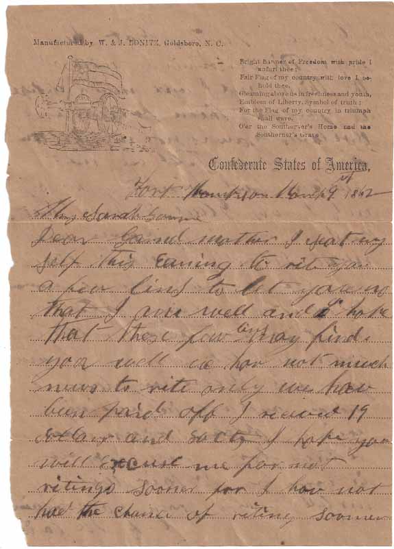 in the battle of New Bern (NC) 3/14/1862 (5 days after this letter was