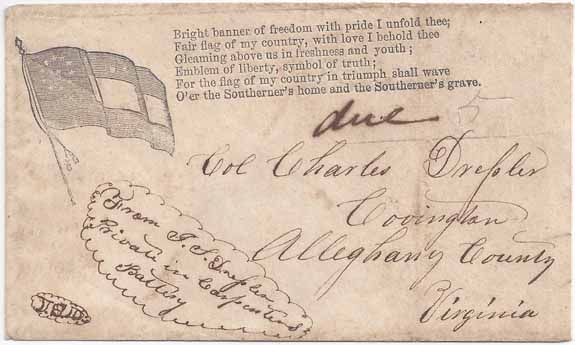 had no postal markings and had a soldier's endorsement. Stars and Bars