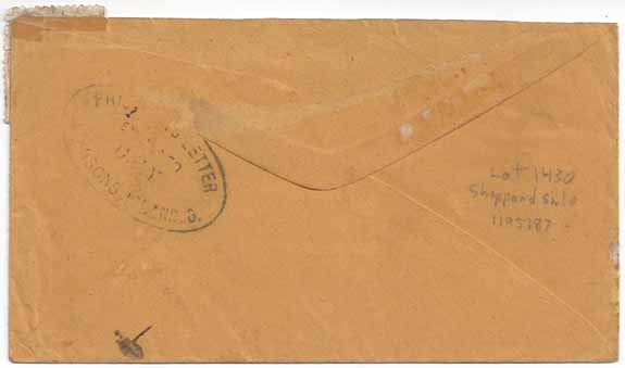 (Loudoun County). Marked "Soldiers Letter" and addressed to Lieut L. M. Shumate, 8th Regt Va Infantry a Prisoner of War at Johnsons Island, Ohio. Lieut Shumate was still a POW at this time and had not yet been released. The oval Johnson's Island Prisoner's Letter Examined GFY Type A handstamp is on the reverse. Part of top back flap missing, but still a very clean cover.