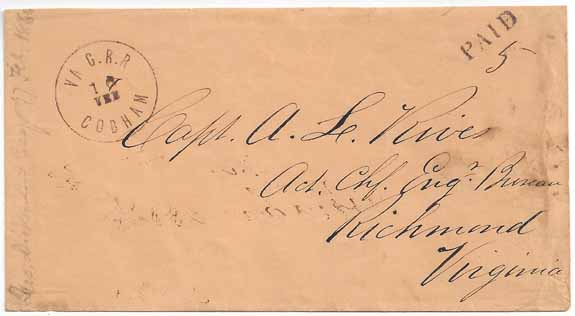 (Virginia Central Railroad) CDS and handstamp PAID "5" (ms) 17 FEB