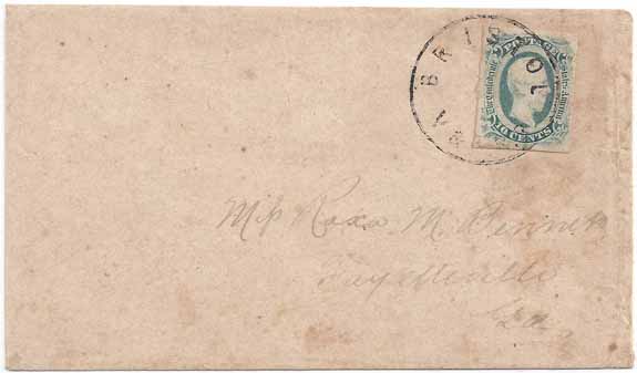 CDS. Light coarse paper cover adressed to Miss. Rosa M. Bennett,