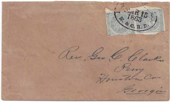 Houston Co., Georgia. The addressee, Rev George Citizen Clarke