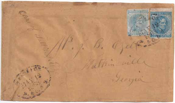 use of the 5c Blue Typograph stamps. Ex-Kohn, Ex-Hannen CSA Railroad Collection. |