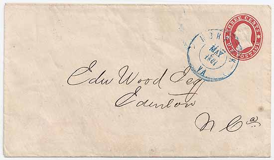 | SR30 | USA 3c Red Star Die small double circle BLUE Norfolk, Va CDS (double strike) 7 MAY 1861 (year in the CDS) US Mail Service in Confederate Virginia on the day Virginia joined the Confederacy to still Union North Carolina. Addressed to Edw Wood Esq, Edenton, N. Ca. Very Fine. Note on the reverse signed by Brian Green. CSA Certificate 2018. | $400.00 SOLD |