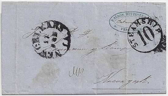 on a US contract mail ship the Tennessee of Charles Morgan's Texas Line which serviced Vera Cruz and taken to Confederate New Orleans with the New Orleans, La CDS applied 27 FEB 1861 (US Mail Service in Confederate New Orleans).