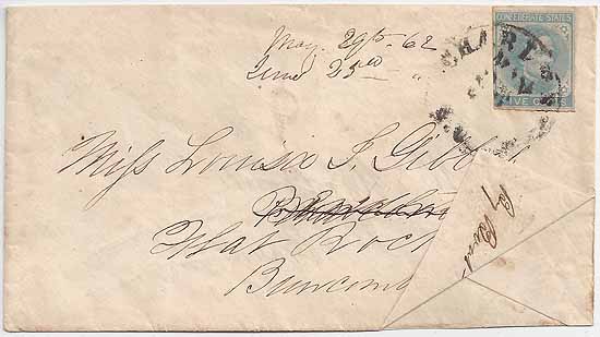 CDS 23 MAY 1862. Addressed to Miss Louisa S. Gibbs, Flat Rock, Buncomb