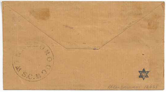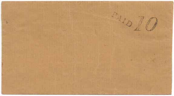 | SC1296 | CSA #97XU2 Winnsborough SC PAID 10 Provisional UNUSED with the Winnsborough SC control mark on the reverse. Winnsborough is a rare provisional with only a small number of covers recorded. This unused provisional cover is listed in the 1982 Crown Survey. Unobtrusive sealed edge tear at left. Stll Very Fine. Ex-Kohn, Ex-Weill Brothers, Ex Molesworth, Ex-Kaufmann. CSA Certificate 1989. | $800.00 |