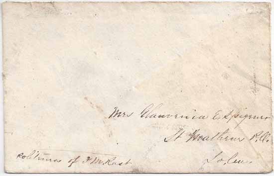 South Carolina. At lower left in the same handwriting as the address "Politeness of F. M. Rast"