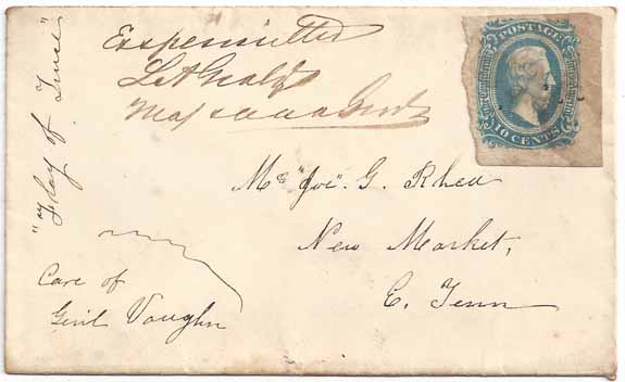 through the lines. Addressed to Mr. "Joe" G. Rhea, New Market, E. Tenn