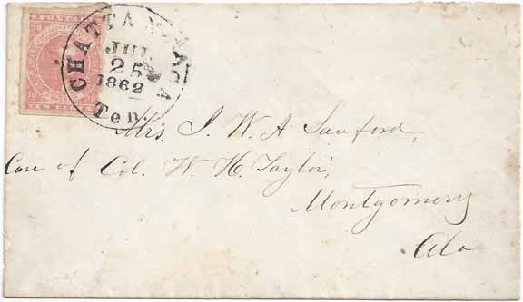 CDS 25 JUL 1862. Addressed to Mrs. J. W. A. Sanford Care of Col W. H.