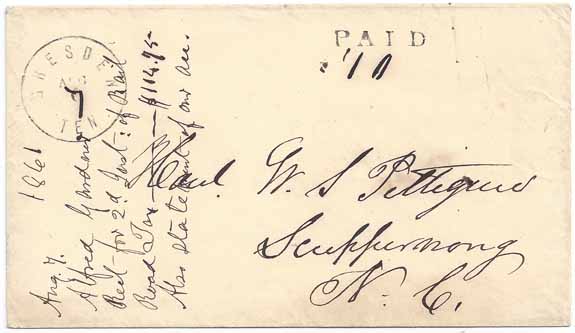 Type A 7 AUG (1861). From the Pettigrew Correspondence addressed to