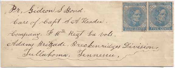 and John C. Breckenridge) to Pr Gideon S. Bond Care of Capt S. A.