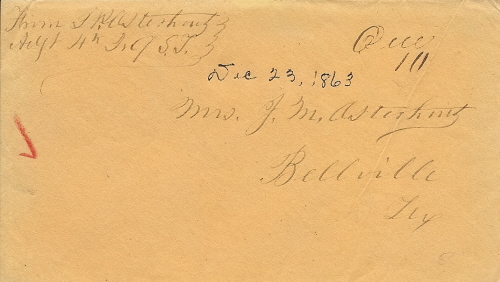 Osterhout, Bellville, Tex. Endorsed at upper left “From J. P. Osterhout Adjt 4th